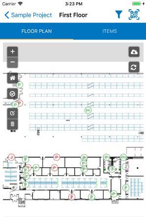 Firestop Locator was developed around having the entire system centered around floor plans for location information. Before anything can be documented using Firestop Locator, users must input information which includes the Project, Buildings, and Floors. At the floor level, a floor plan is uploaded for each floor to enable users to pinpoint where on the floor plan certain assets are located. Once the floor plan is uploaded, all that is required to start documenting is a single tap on the floor plan, making the process very quick and efficient. Assets that can be documented within Firestop Locator are called Items which include Penetrations, Joints, Doors, Dampers, Extinguishers, and Barriers.