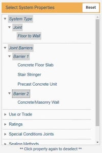 Fire-rated construction joints between rated floors and rated walls (Floor-to-Wall) and joints between two rated floors (Floor-to-Floor) are common applications on commercial construction projects. At STI we have numerous product options that can address various joint widths and hourly ratings for these applications. When searching Floor-to-Floor and Floor-to-Wall joints on The System Search & Submittal Builder on the website you will see the choices shown in Figure 1.