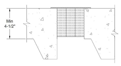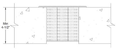 By applying the UL Guideline information I am able to use this system for a 4-1/2” thick concrete floor over metal deck as shown in Figure 3 because the thickness of the concrete above the flutes is minimum 4-1/2” thick and none of the forming material extends below that surface. The content in the UL Guide information is very helpful in allowing for versatility of these types of Joint systems to cover the various conditions that exist on different projects and construction types.