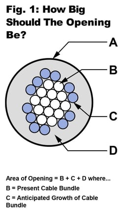 This is one of the most important and at times, difficult issues to grasp. It is vital to the proper design of cable penetrations. Most people vastly underestimate the area of openings that should be provided to suit the wiring needs of a project and give little or no consideration to future expansion. The area of the opening should be able to accommodate the present and future cabling needs along with the appropriate firestop system.