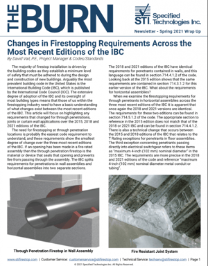 - Changes in Firestopping Requirements Across the Most Recent Editions of the IBC