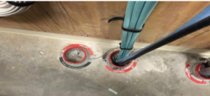 Figure 1: Competitive systems require more floor space and must remain accessible to facilitate cable moves, adds, or changes to unseal and reseal firestop and smoke sealing system. See Figure 2 and 3.